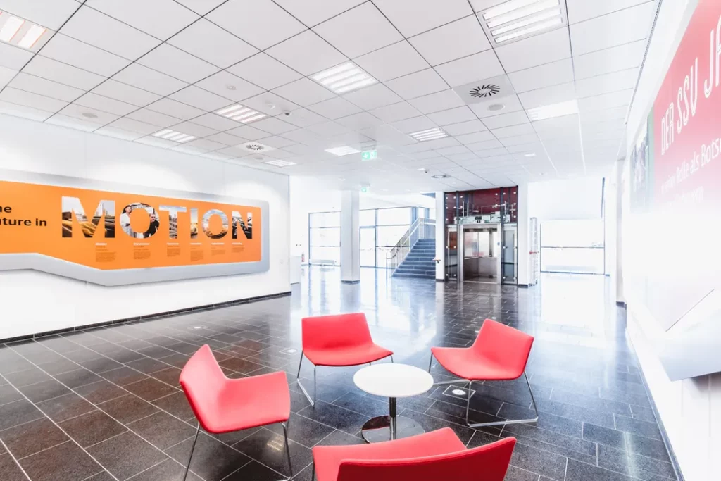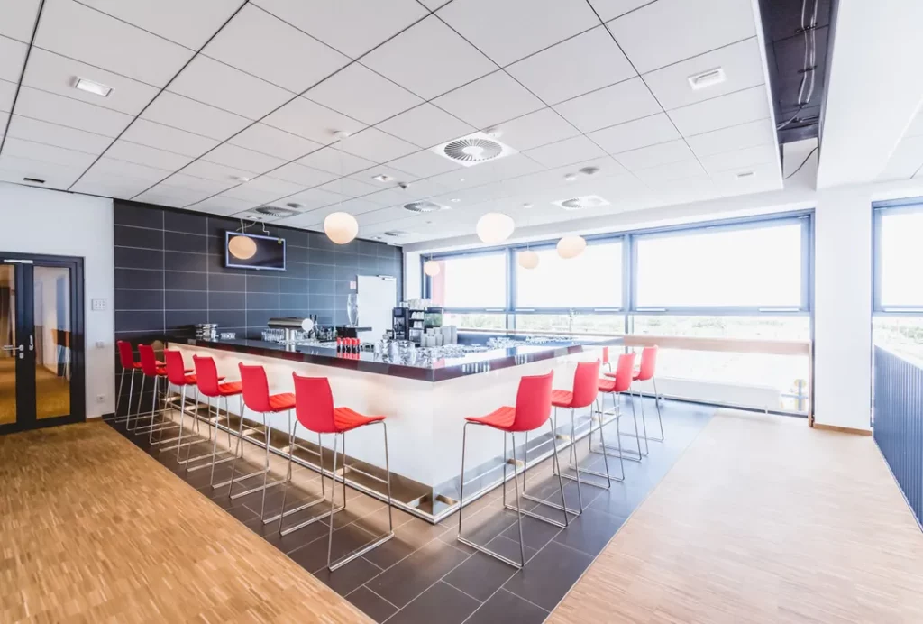 Verwendung von akustischen Trennwänden, um den Schall zu kontrollieren und die Privatsphäre zu wahren.Spezielle Lichtsysteme, um die Atmosphäre und Stimmung zu ändern.Vintage-Möbel, um einen Retro-Stil zu schaffen oder moderne Möbel für einen zeitgemäßen Stil.