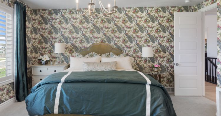 - Florale Motive: Florale Motive sind ein zeitloser Klassiker für Schlafzimmer-Tapeten und können in verschiedenen Stilen und Farben erhältlich sein. Designer können eine luxuriöse Note hinzufügen, indem sie Tapeten mit aufwendigen Blumenmotiven oder Details wählen.